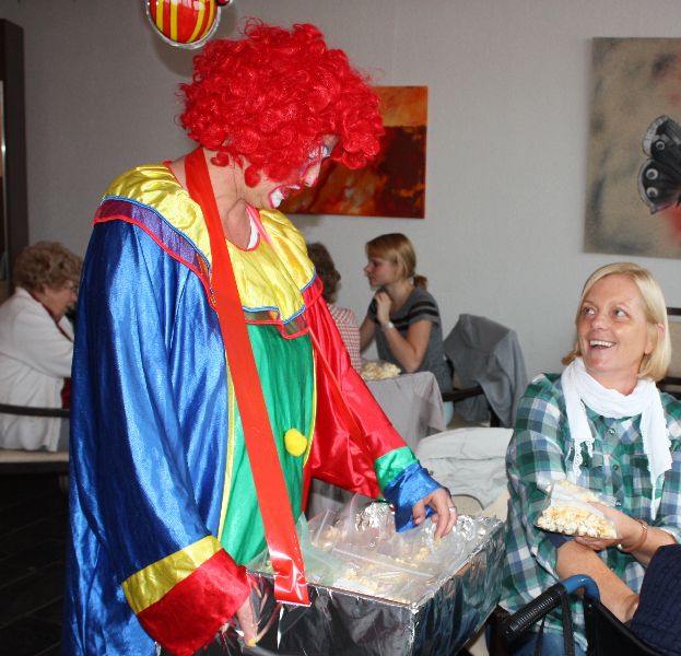 Unter dem Motto „ Kunterbunter Zirkus“ wurde den Bewohnern, Angehörigen und Besuchern ein mit Luftballons, bunten Clowns, Holzponnys und bunten Girlanden geschmücktes Haus, welches an eine Zirkusarena erinnerte, präsentiert. Nach dem gemeinsamen Kaffeetrinken mit dem reichhaltigen Kuchenbuffet, eröffnete Heimleiter Marcus Draheim, verkleidet als Zirkus-Direktor, das Fest mit einer spaßigen Ansprache.
